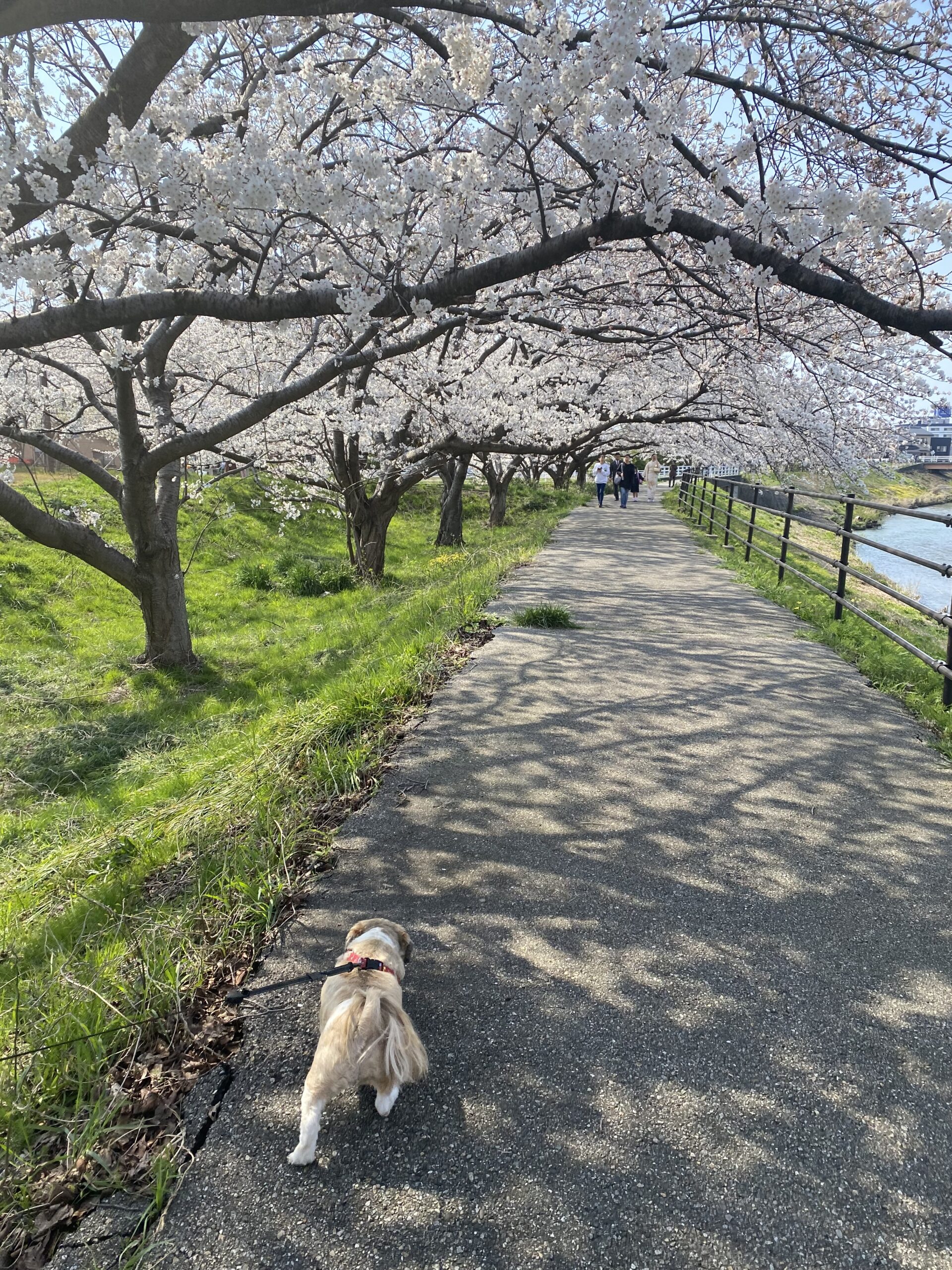 今年もみくちゃんと桜並木をお散歩しました🌸